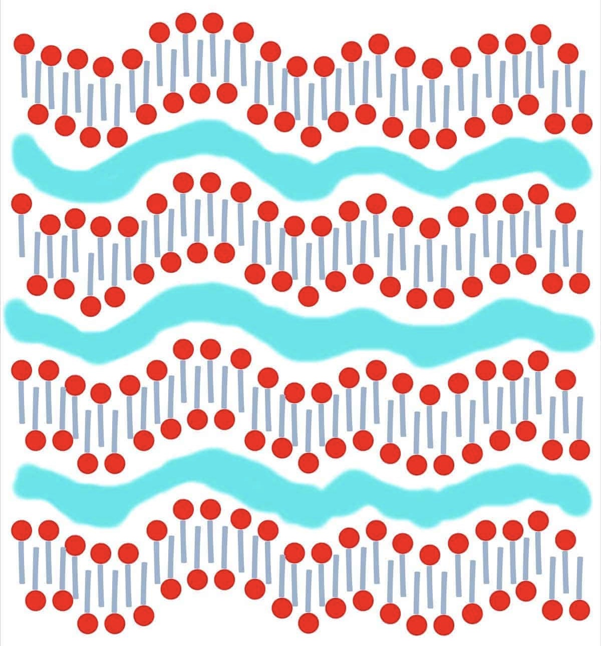 Au fur et à mesure que l’eau s’évapore, les différentes molécules de savon formées vont s’aménager de manière ordonnée et structurée. A terme, tel un véritable cristal, ce processus conduira à un savant agencement tridimensionnel régulier et répétitif de cristaux de savon et de liquide. Le savon gagnera en dureté ce qui en augmentera la durée de vie…