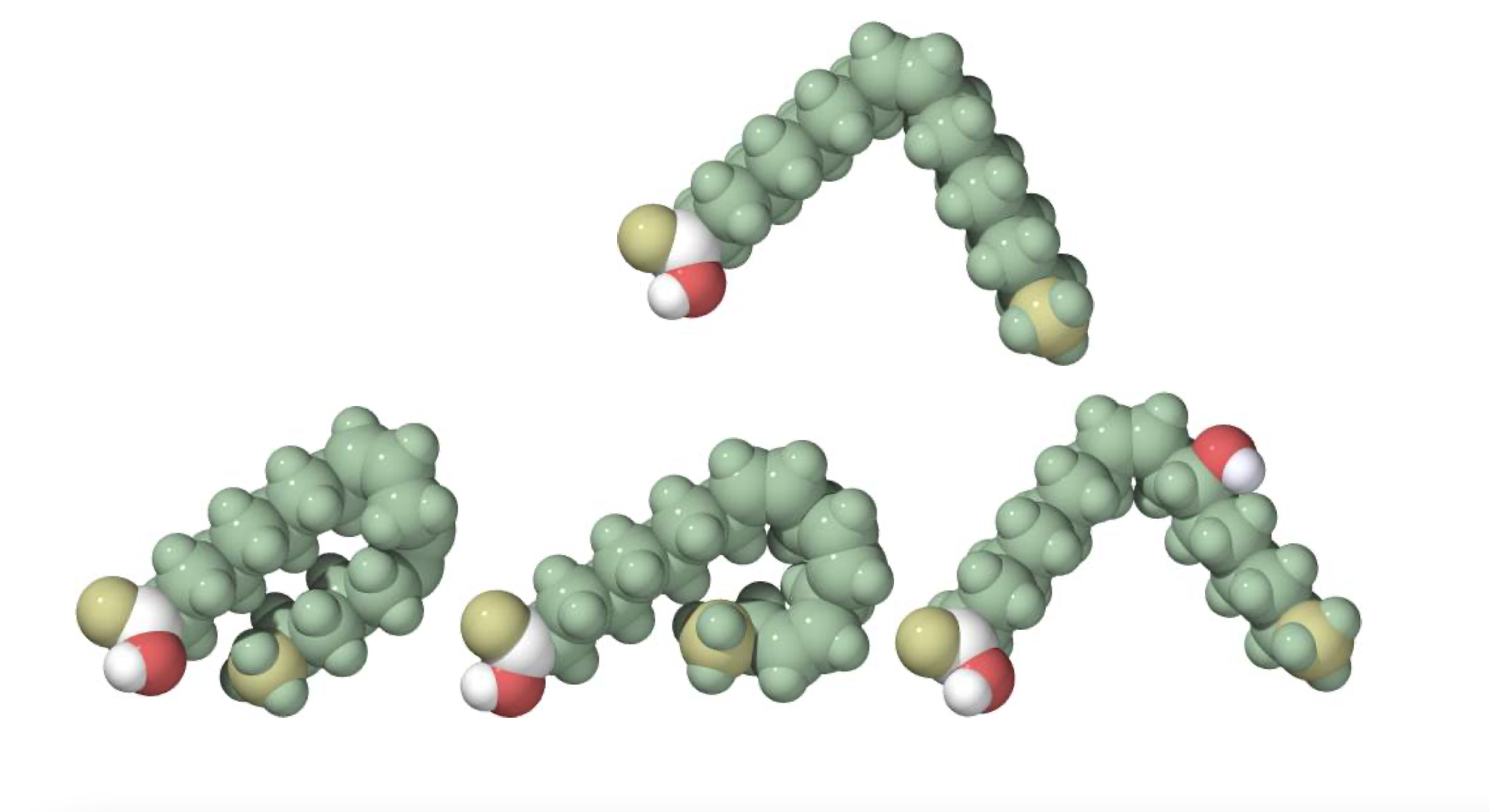 Alors que les acides gras saturés ne se différencient que par le nombre d’atomes de carbone de leur linéaire chaine carbonée, les acides gras insaturés quant à eux se distinguent d’une part par le nombre de doubles liaisons qu’ils possèdent et d’autre part par la position qu’elles occupent sur la chaine carbonée et qui en compliquent la structure. On comprend donc facilement pourquoi certains d’entre eux ont plus de mal que d’autres à rentrer dans la rang. La palme d’or revient à l’acide oléique. Composant majoritaire de l’huile d’olive, il contient une double liaison carbone au milieu de la chaine qui tord la molécule en forme de U. Cette volumineuse configuration empêche les molécules de savon produites de bien s’intégrer dans la structure d’un cristal… Voilà pourquoi la cure du savon de Castille est désespérément longue…